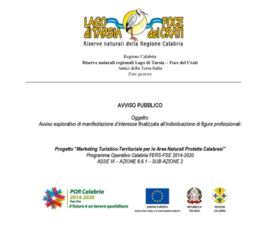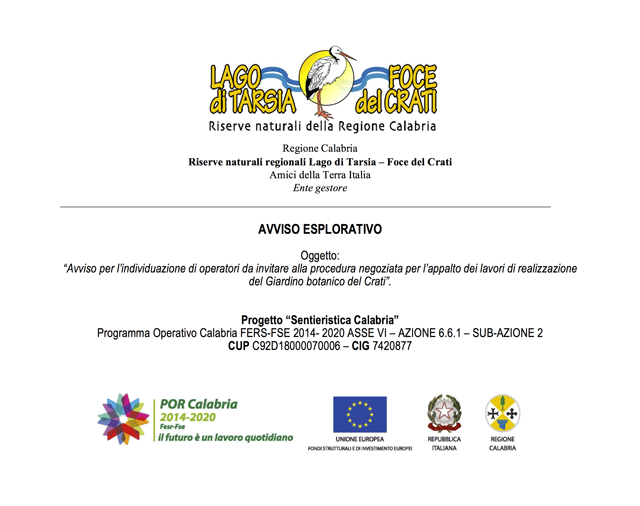 Avviso per l’individuazione di operatori da invitare alla procedura negoziata per l’appalto dei lavori di realizzazione del Giardino botanico del Crati